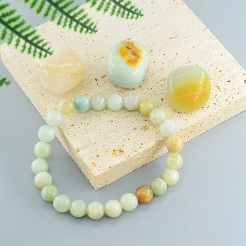 Embark on a journey of grounded elegance with our Natural Amazon Stone Beads Bracelet.